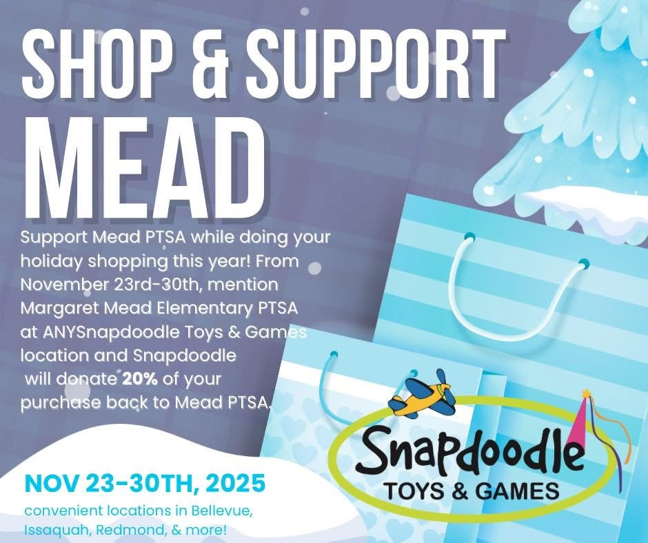 Support Mead PTSA while doing your holiday shopping this year! From November 23rd-30th, mention Margaret Mead Elementary PTSA.