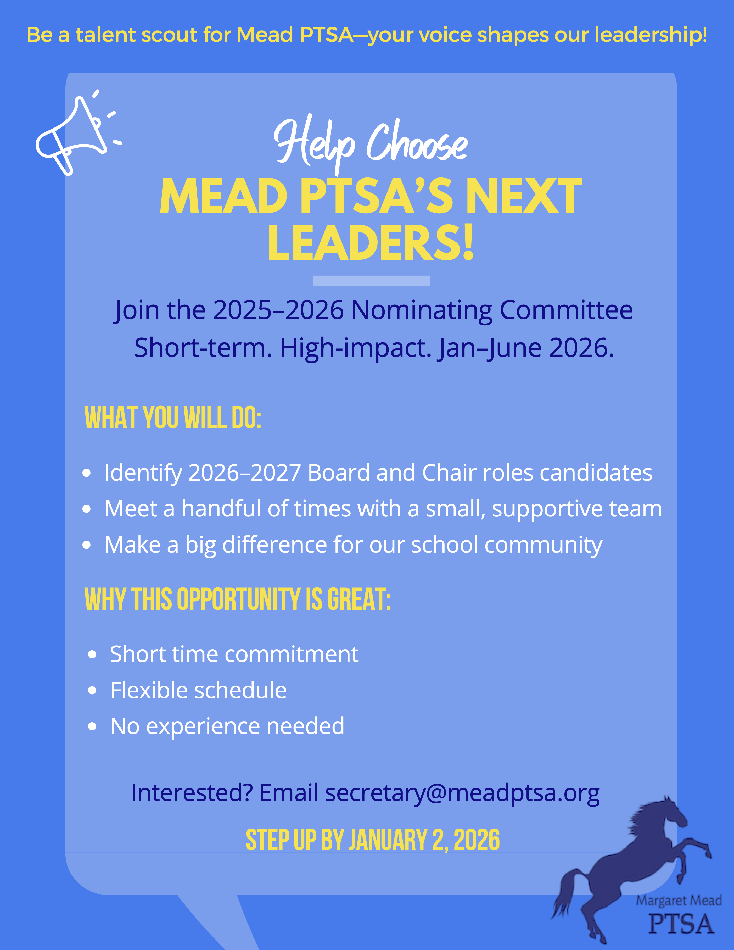 Volunteers needed for the Mead Health Screening on 12/16/25! Support our amazing school nurses in screening our kids hearing and vision. No experience is needed, training will be provided. Sign up here.